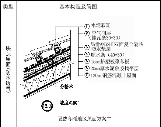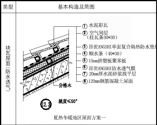 夏熱冬暖地區(qū)屋面方案二(傳熱系數(shù)K=0.85W/(㎡.K)