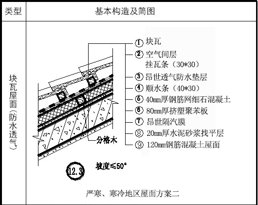 嚴(yán)寒、寒冷地區(qū)屋面方案二(傳熱系數(shù)K=0.43W/(㎡.K)