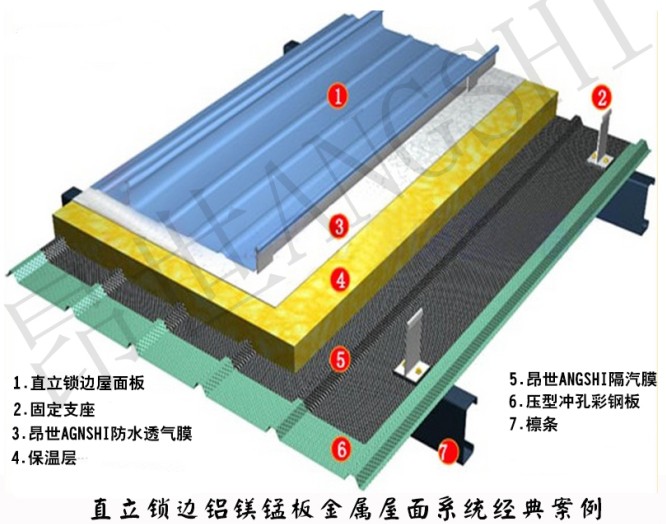 該方案透汽防水墊層不僅擁有優(yōu)良的防水功能,而且保證整個(gè)建筑的氣密性和水密性,雙面鋁箔復(fù)合隔熱防水墊層保證了夏天適當(dāng)?shù)母魺峁δ?,更主要的冬天起到了室?nèi)保溫的效果。